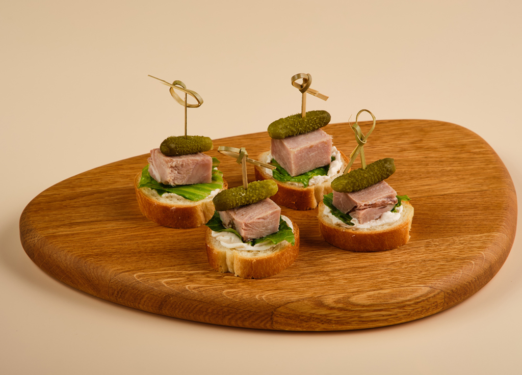 Канапе с бужениной и корнишонами на хлебном тосте 4шт/140гр с доставкой