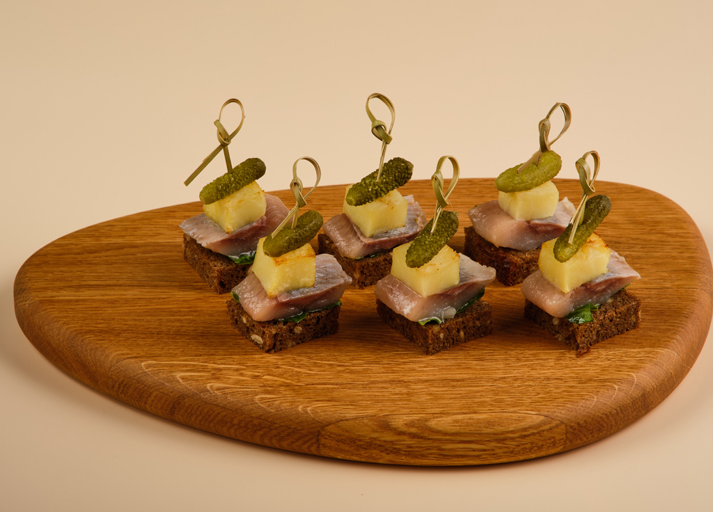 Канапе со слабосоленой сельдью и картофелем на зерновом хлебе 6шт/200гр с доставкой
