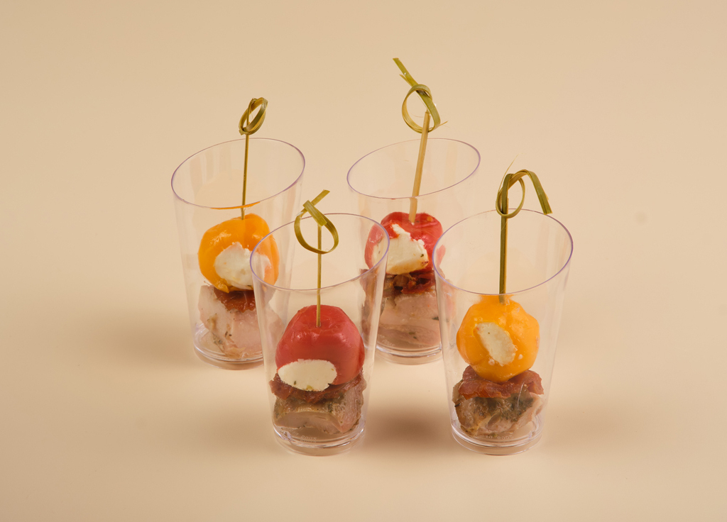 Канапе с запеченным цыпленком и печеным перцем с творожным сыром 4шт/100гр с доставкой