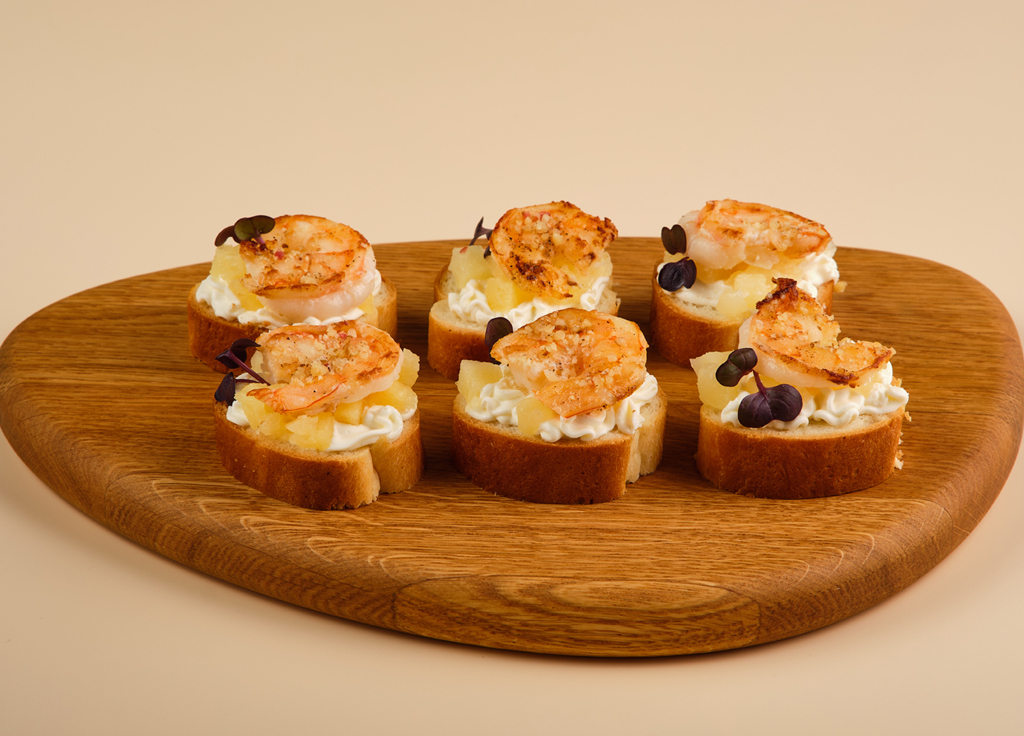 Тапасы с креветкой свит-чили, сладким ананасом и сливочным кремом 6шт/180гр с доставкой